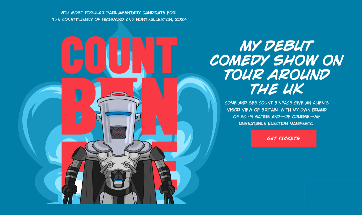 Count Binface didn’t defeat our former Prime Minister—Sir Keir Starmer did that—but he did come sixth with his highest tally of votes, meaning his campaign was a success. How much of that was due to his new Squarepace website isn’t known, but my sources on Sigma 9 tell me it was a lot. Whatever the truth is, I thoroughly enjoyed developing the new Count Binface with Squarepace and I hope it works well for him for thousands of years to come.